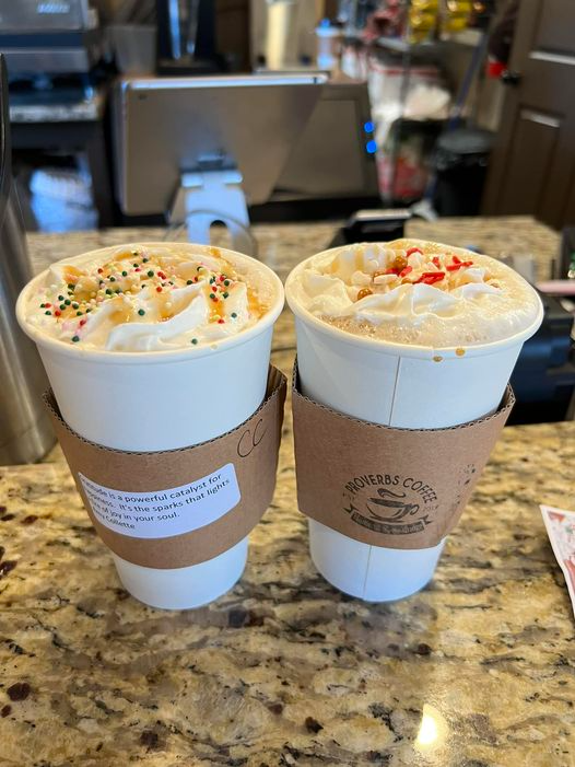 Grab a Pick-Me-Up during your Open House shopping at Proverbs Coffee – Home of Spoonfudge from 1-5pm! They have a delicious Holiday Menu including (pictured) the Mrs. Claus and Christmas Cookie